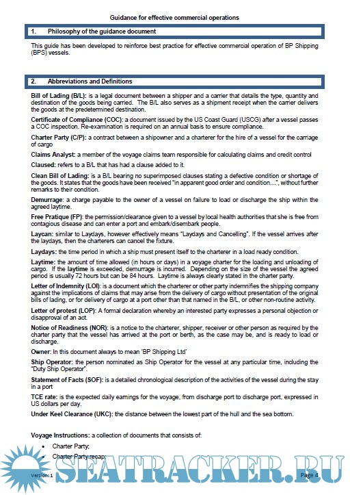 Year: 20xx Language: english Author: BP Shipping Genre: Guide Publisher: British Petroleum Shipping Edition: Version 1 Format: PDF Quality: eBook Pages count: 14 Description: This guide has been developed to reinforce best practice for effective commercial operation of BP Shipping (BPS) vessels.