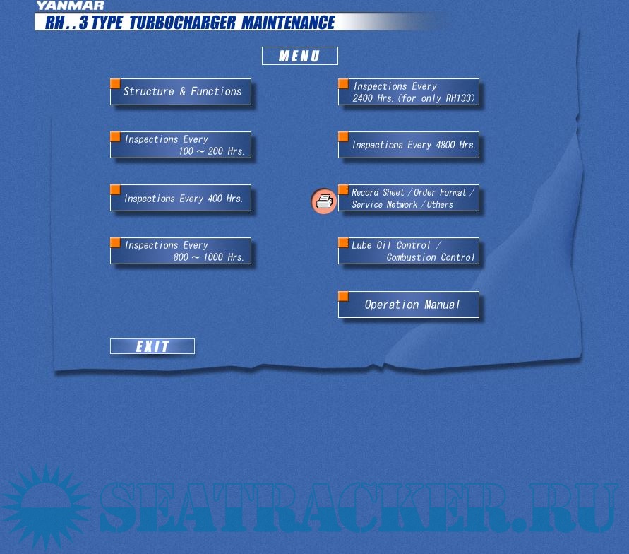 Description: Yanmar RH..3 Type Turbocharger Maintenance movies and slides alongwith operation manuals.