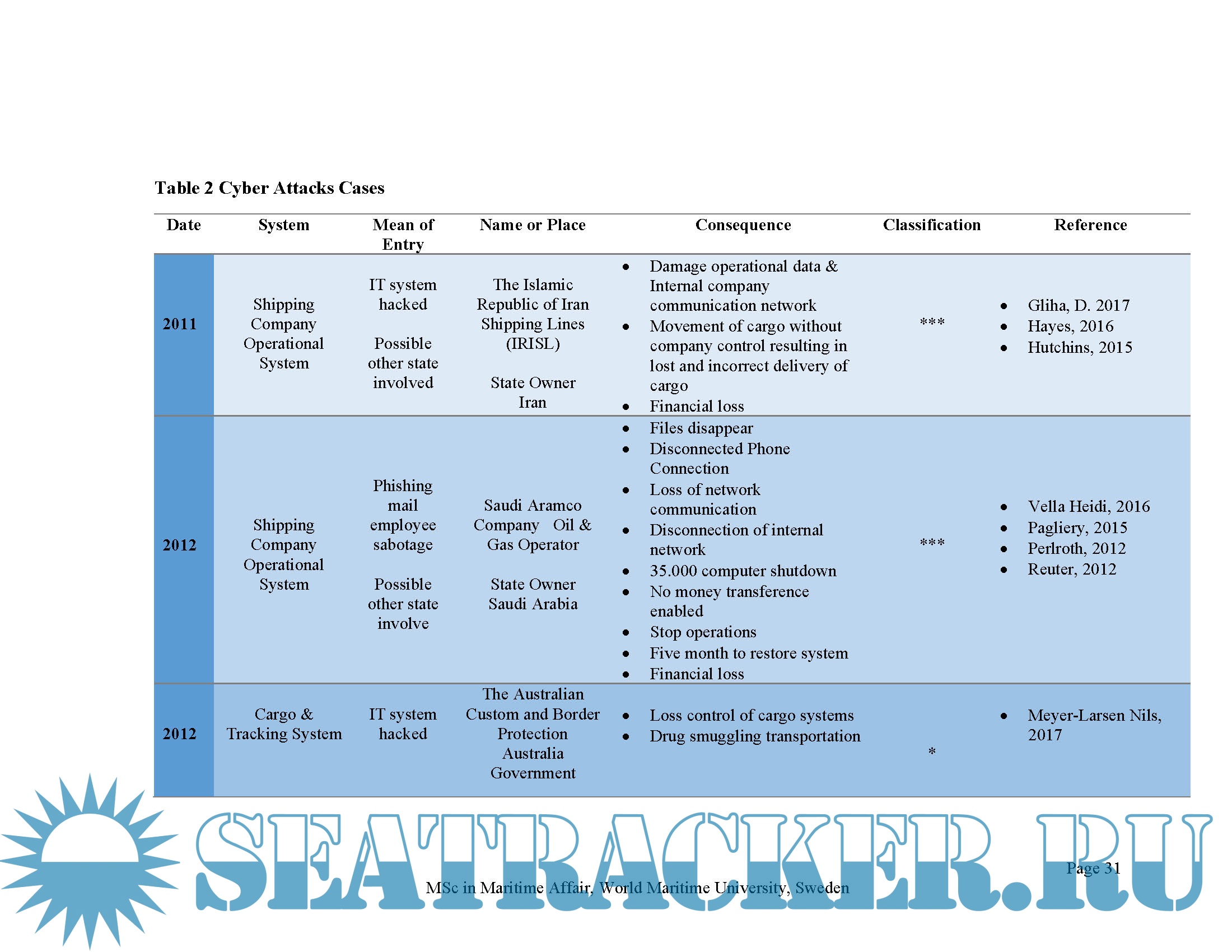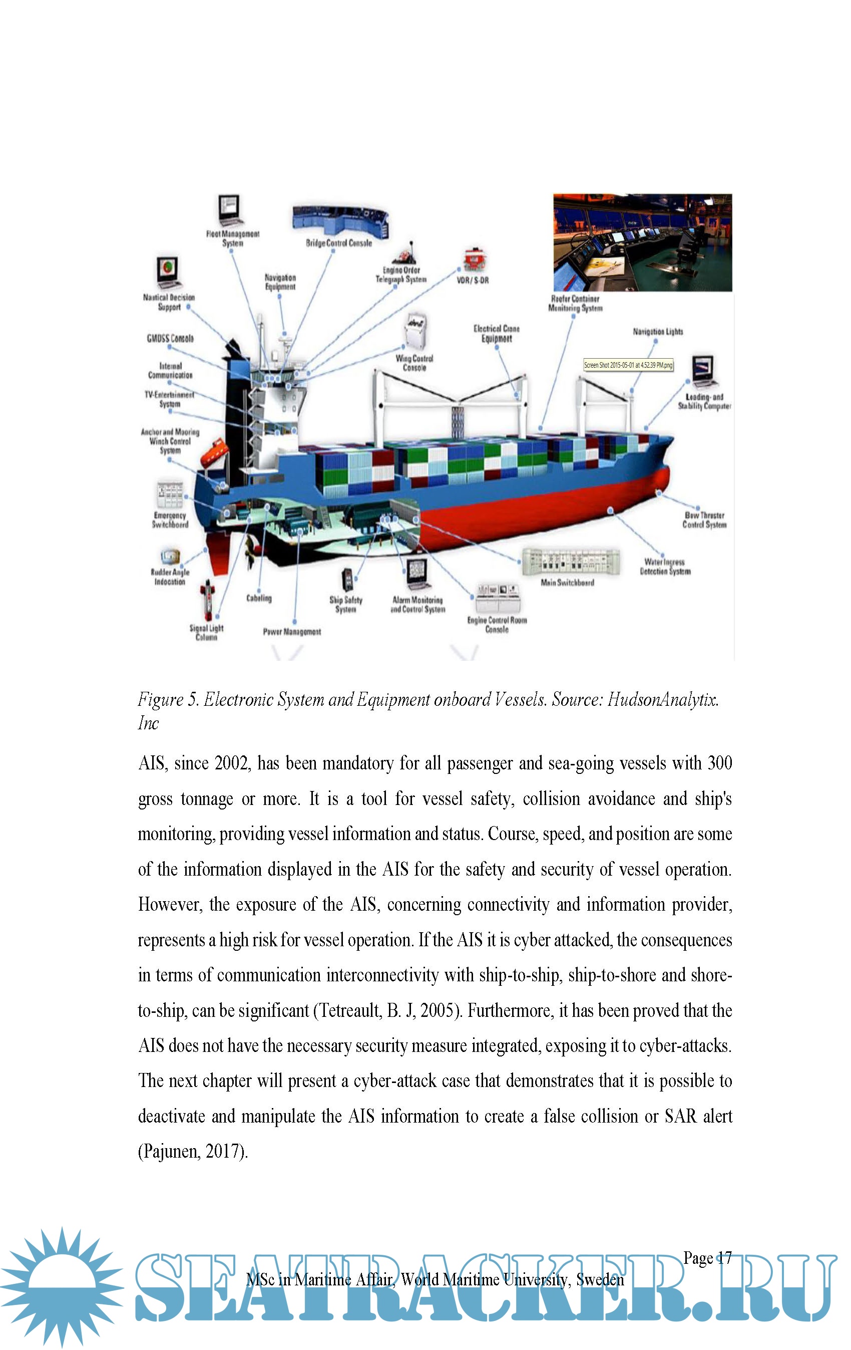 This research effort also includes an overview of the current mitigation guidance developed by International Maritime Organization and the maritime industry with a review of the existing practices implemented by shipping companies and flag administrations. Possible consequences and cyber-attacks in terms of safety, environment and economy are discussed. Finally, conclusions and recommendations are presented, highlighting the necessity for stakeholders in the maritime industry to be aware of the current cybersecurity situations, and develop pertinent strategies to address cybersecurity issues and the use of modern system.