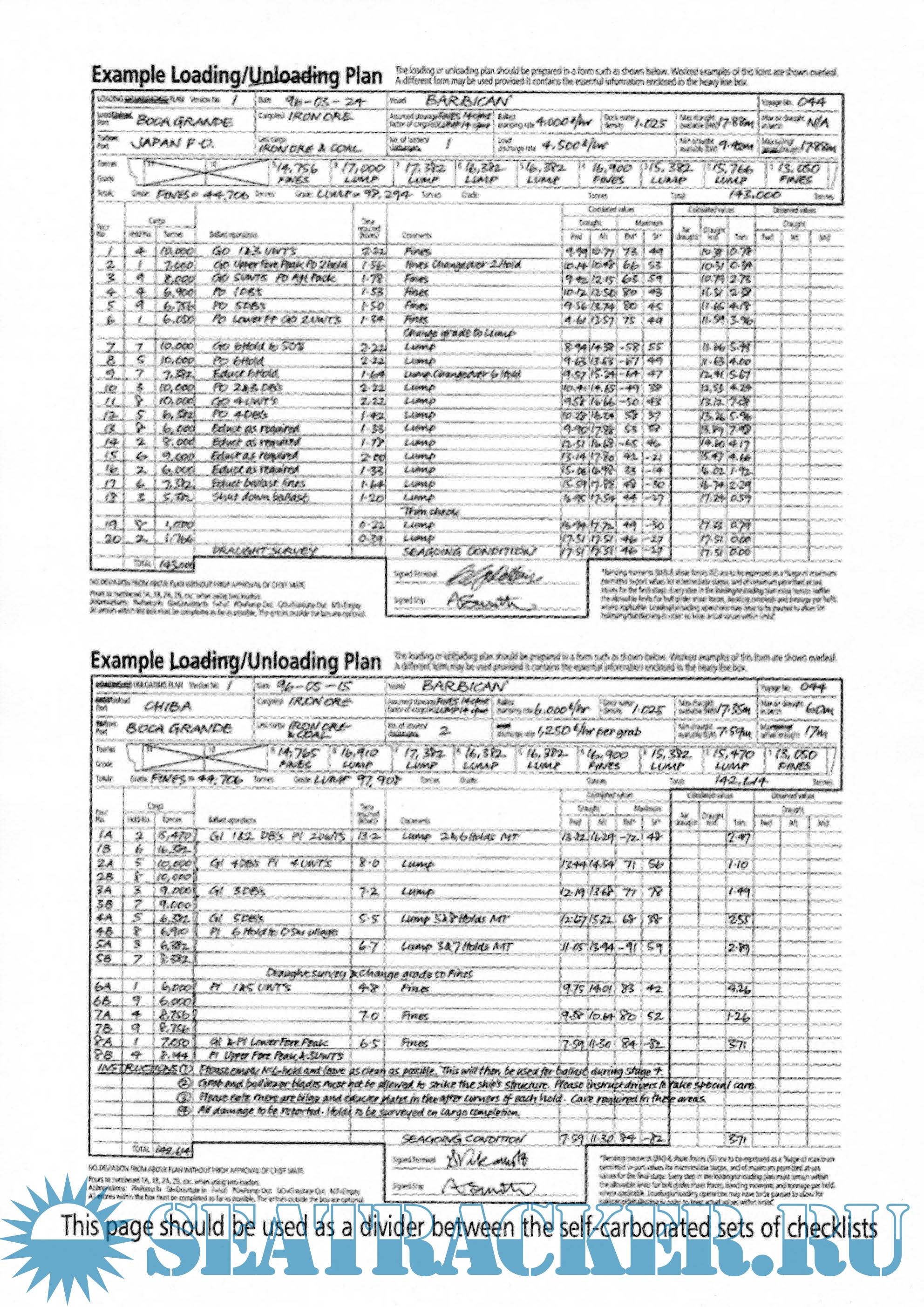 - Guidelines for Completion - Example Loading/Unloading Plan - Ship/Shore Safety Checklists