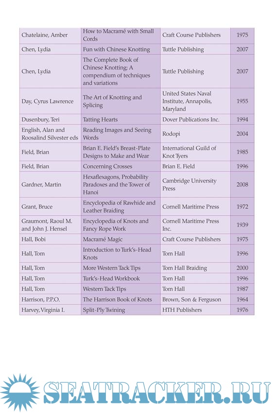 Year: 2013 Language: english Author: Philpott L. Genre: Manual Publisher: Skyhorse Edition: 1st ISBN: 1620878143 Format: EPUB Quality: eBook Pages count: 1021 Description: All knots are useful, but many can also be very beautiful. Here, Lindsey Philpott, expert knot tyer, sets out to provide the most comprehensive, useful, and attractive book of decorative knots from around the world. Readers will learn the materials, methods, measurements, and tools needed to tie dozens of beautiful knots. Flat knots, round knots, square knots, covering knots—you name it, and this book has it. From braids to plaits to sinnets, here are step-by-step instructions accompanied by full-color photographs for the knot tyer’s reference. Chapters include: Getting Started Purely Decorative Knots Netting and Woven Knots Turk’s Head Knots Knob Knots And much more! Philpott provides a brief history of knotting, in addition to instructions and helpful images. Practical tips, like what materials not to use will advise beginners about the details of knot tying. Once you practice the knots illustrated in these pages, you can use the information to create your own individual style—and even some new knots! Handy reference book as well as a beautiful gift, this is an essential addition to every knot enthusiast’s library. Additional info: About the Author Lindsey Philpott has been tying knots since the age of six. His father taught him to fish without rod, line, or hook by “tickling” trout in the Devon streams of his native England.