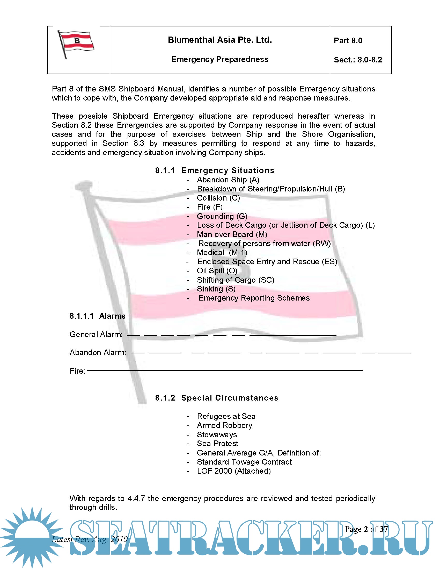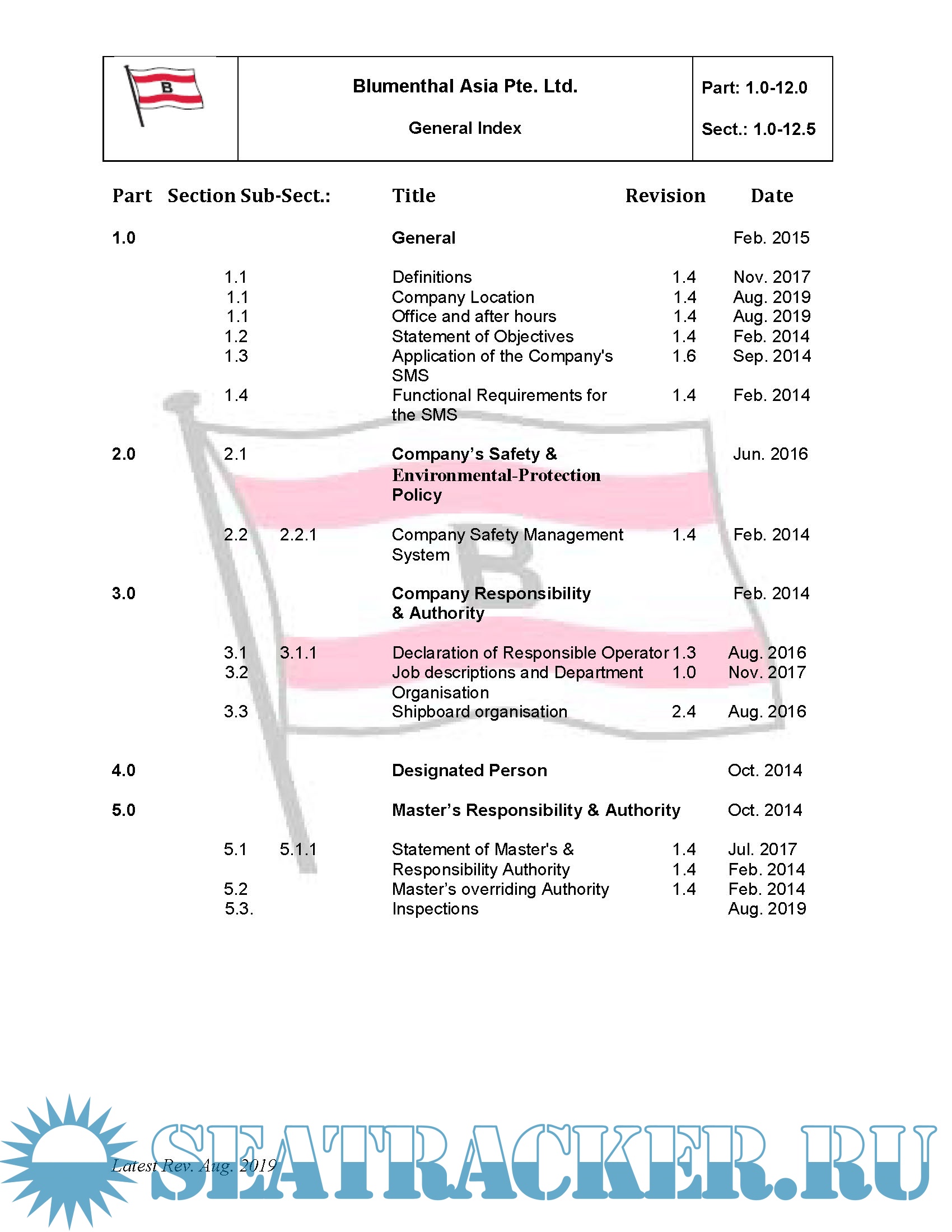 Description: Safety Management System (SMS) Ship Manual