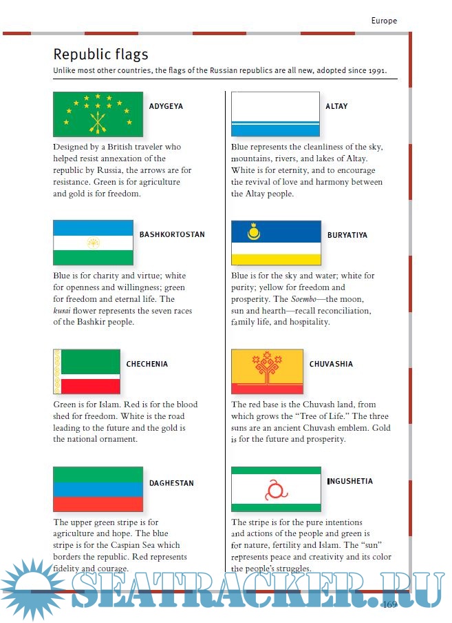 Detailed notes and annotations reveal the flags' origins and development, and explain the significance of colours, symbols, crests, and coats of arms.