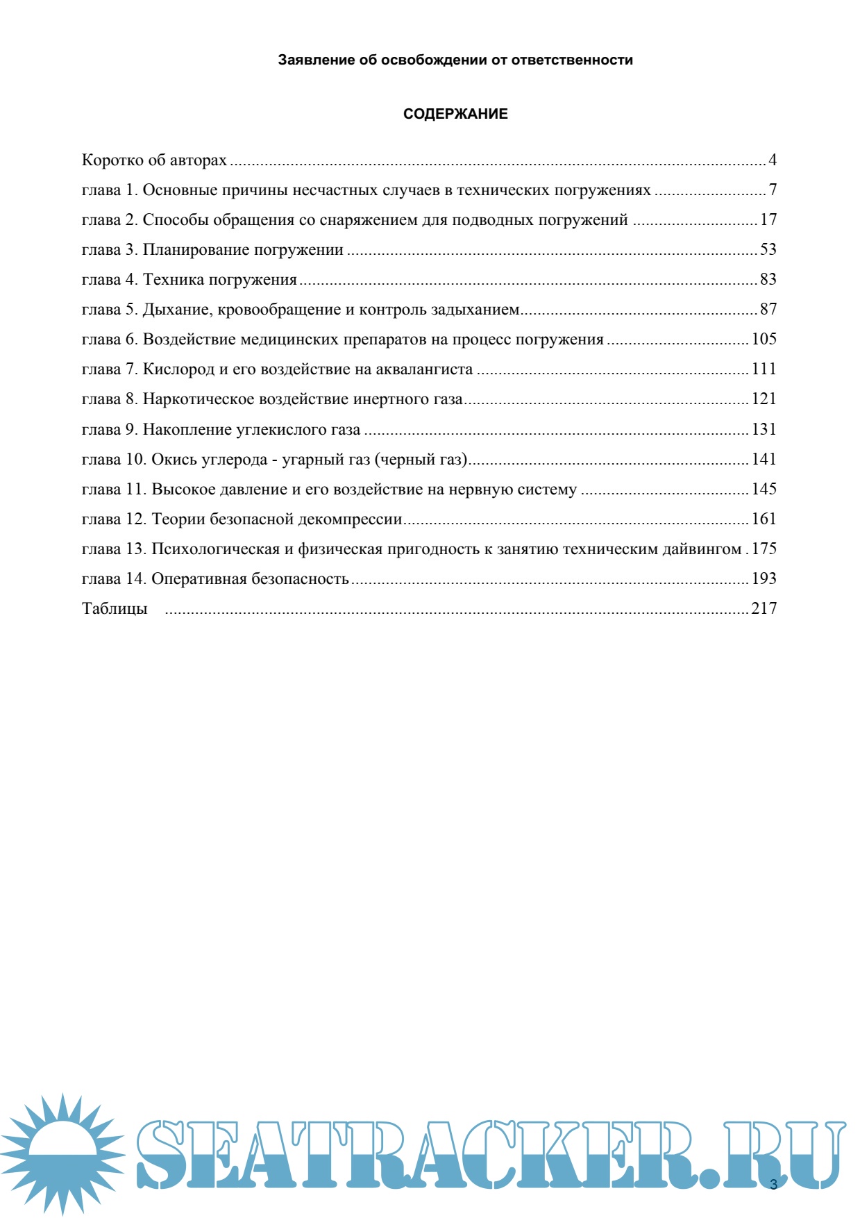 Описание: Энциклопедия технического дайвинга Тома Маунта. На сегодняшний день эта книга считается наиболее полным сборником информации обо всех аспектах технических погружений. Конфигурации снаряжения, планирование погружений, уникальные таблицы для расчета декомпрессионных погружений, декомпрессионные теории, физика газов и физиология, медицина, погружения на нитроксных и кислородно-гелиевых смесях — это лишь некоторые из тем, рассматриваемые в «Технической Энциклопедии». Большинство ведущих специалистов мира считают что она «должна быть прочитана всеми, кто стремится расширить свои познания в подводном плавании».