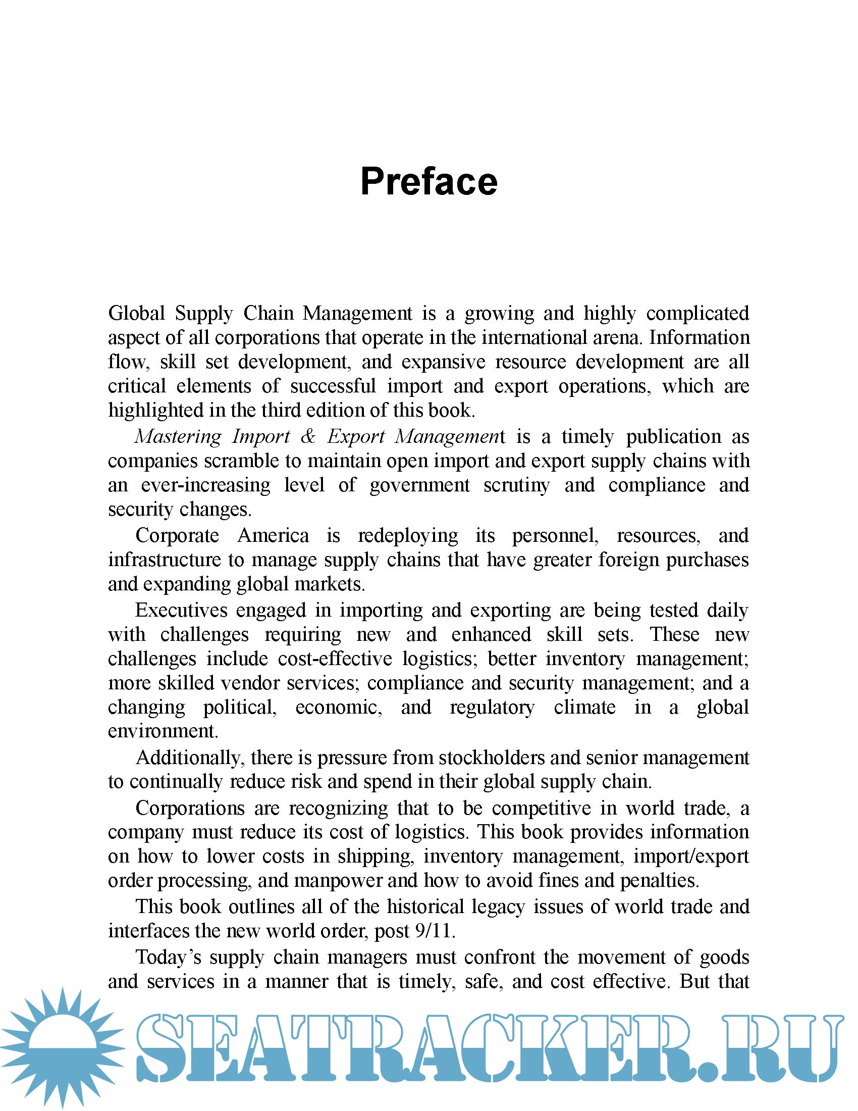Description: Filled with step-by-step instructions, cost-effective strategies, and ready-to-use forms, this third edition of Mastering Import & Export Management walks you through every key area—from handling logistics to building a global team to complying with post-9/11 security measures to clearly documenting shipments using Incoterms. Completely updated, the guide simplifies the latest regulations and gathers best practices in an evolving field, including: