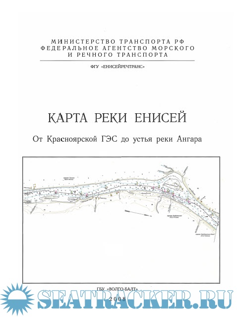 Описание: Карта реки Енисей составлена и откорректирована по данным на начало навигации 2008 г. Сведения об изменениях, происшедших после указанной даты, публикуются в последующих выпусках корректуры, издаваемых ФГУ «Енисейречтранс».