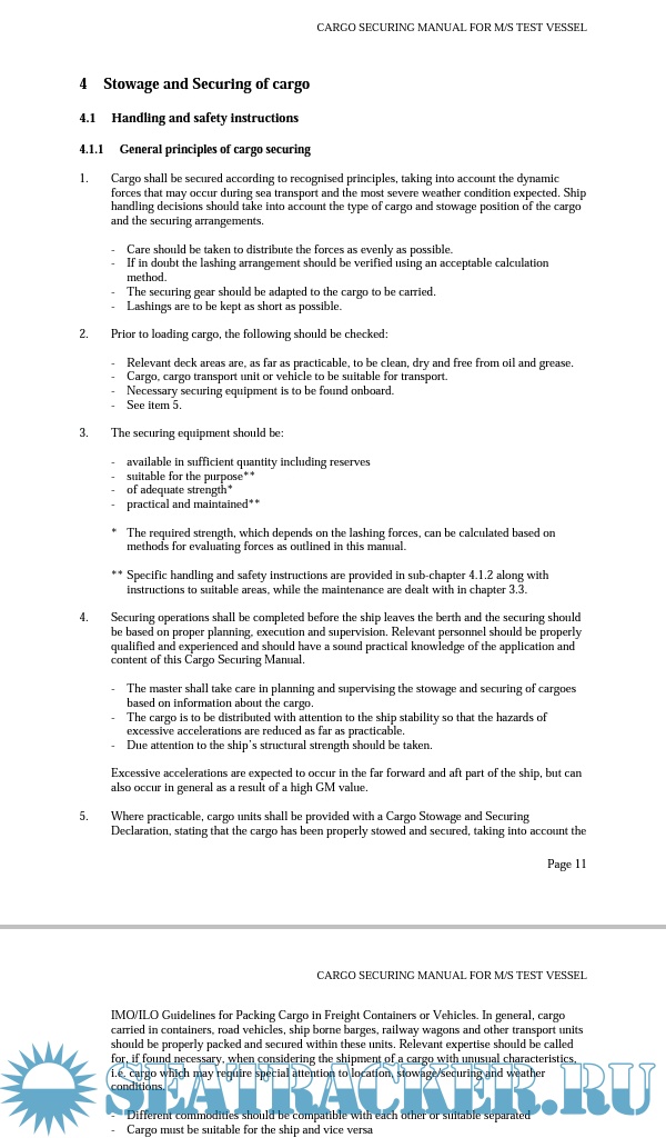Description: This is an example of a Cargo Securing Manual according to “Guidelines for the Preparation of the Cargo Securing Manual” (IMO MSC/Circ.745) and the “Amendments to the Code of Safe Practice for Cargo Stowage and Securing (IMO MSC/Circ.1026