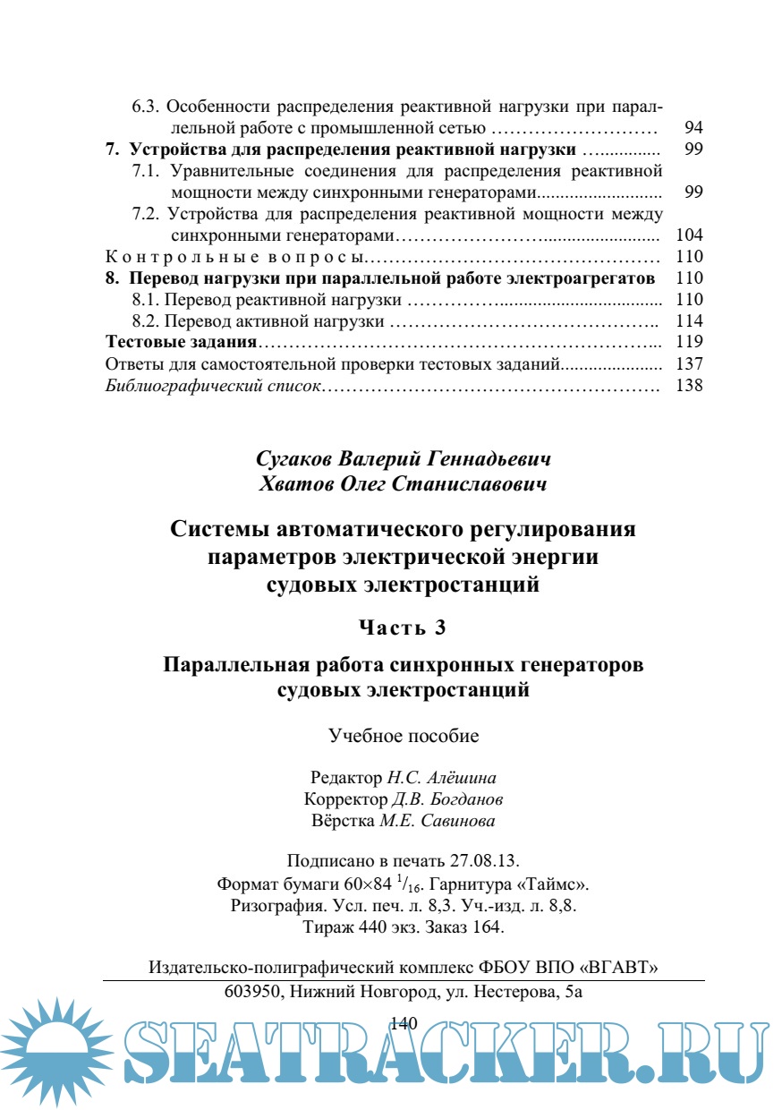 Системы автоматического регулирования параметров электрической энергии судовых электростанций. Ч.3. Параллельная работа синхронных генераторов судовых электростанций
