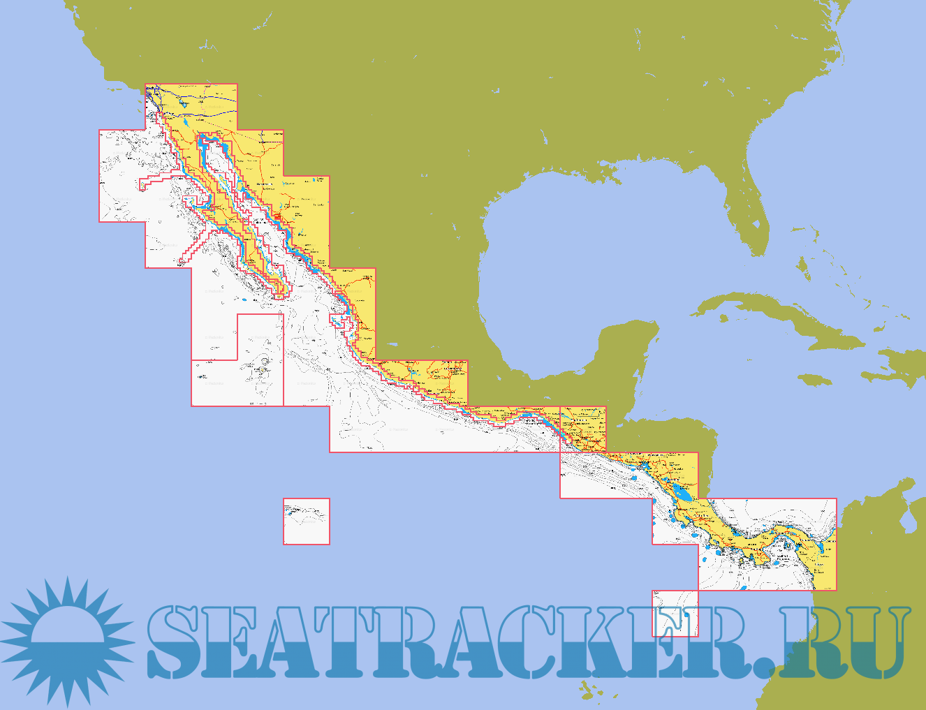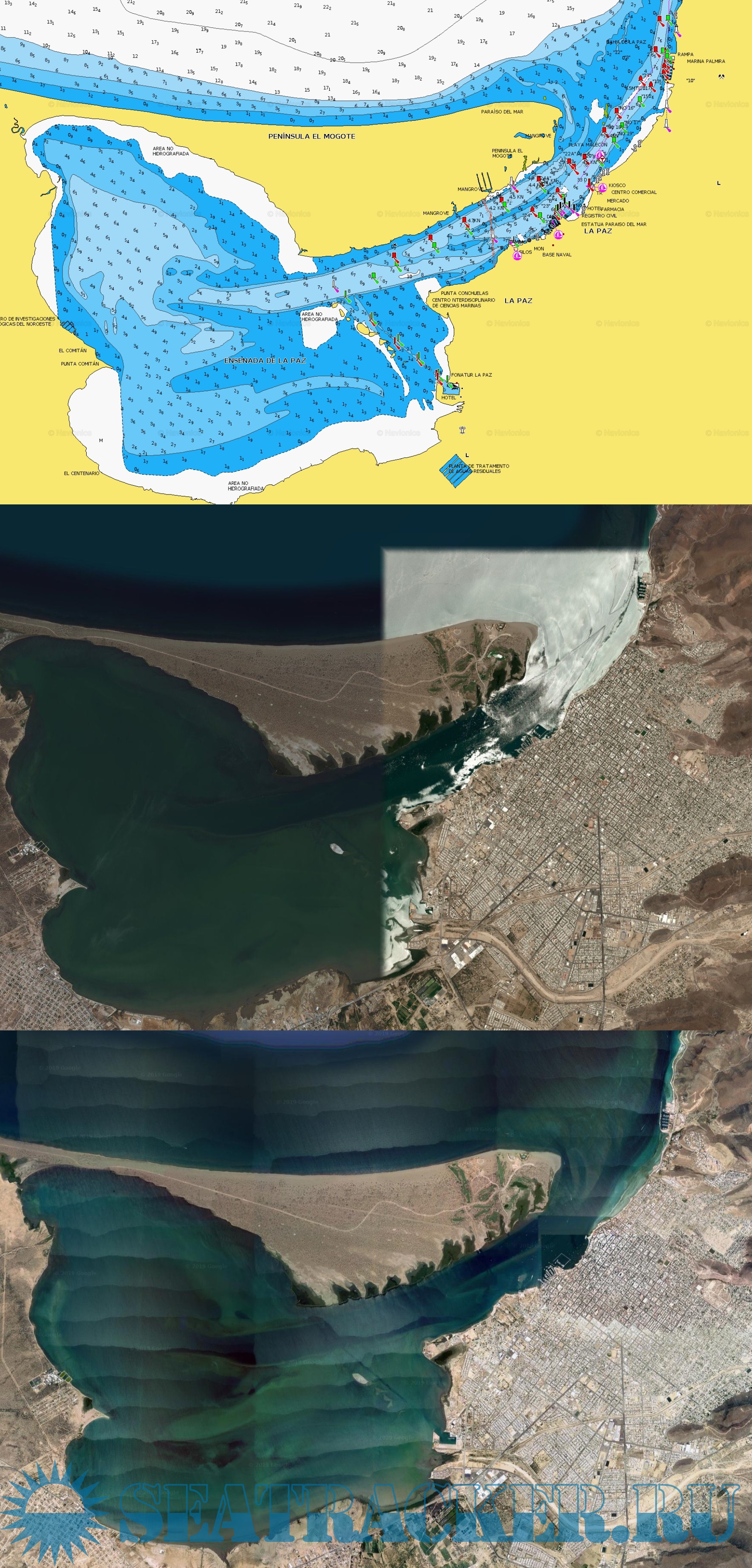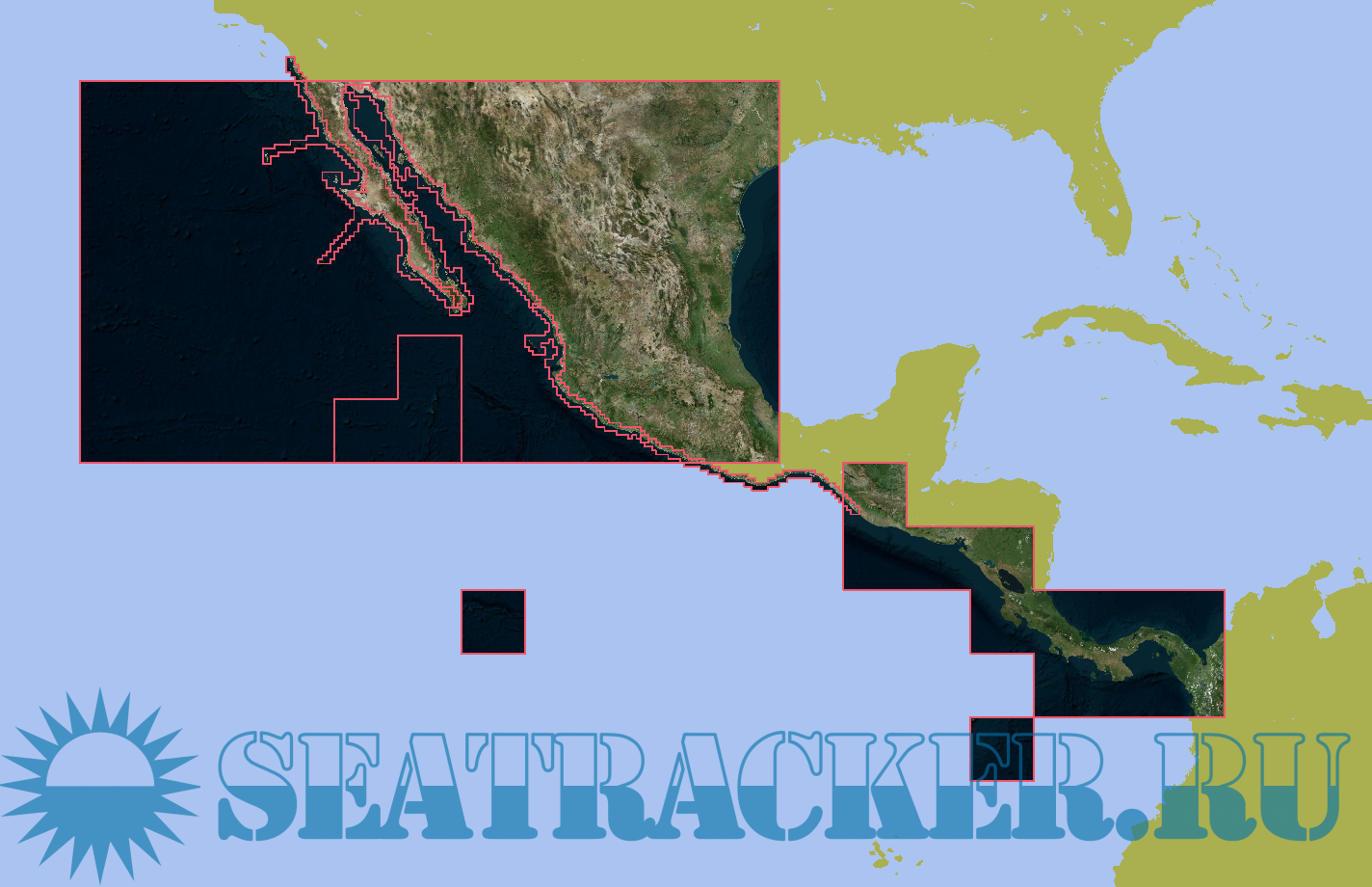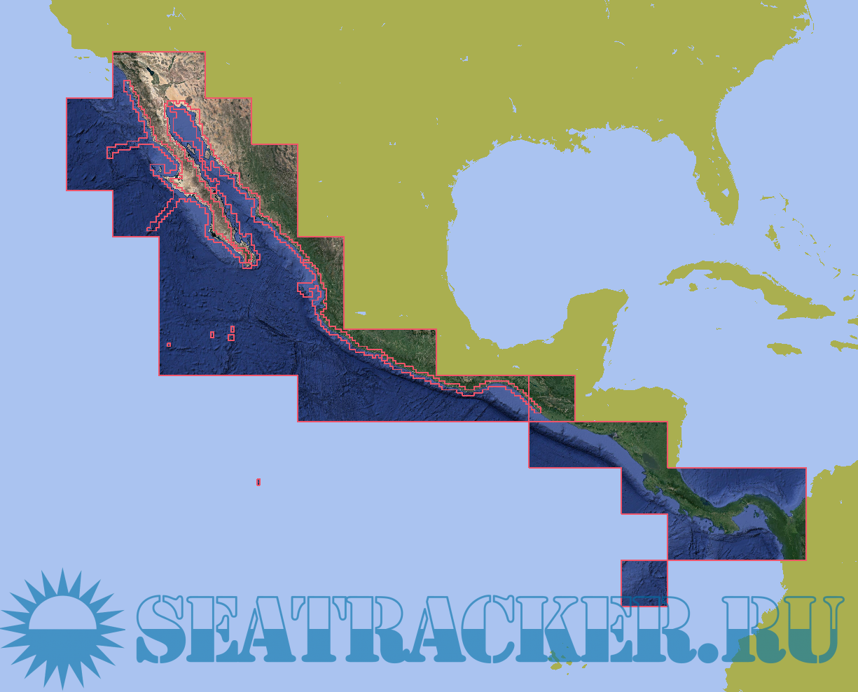 Raster charts covering Baja, Sea of Cortez and Pacific Mexico down to Colombia. Sources are Google Satellite, Bing Satellite and Navionics. Maps dated August 2021.