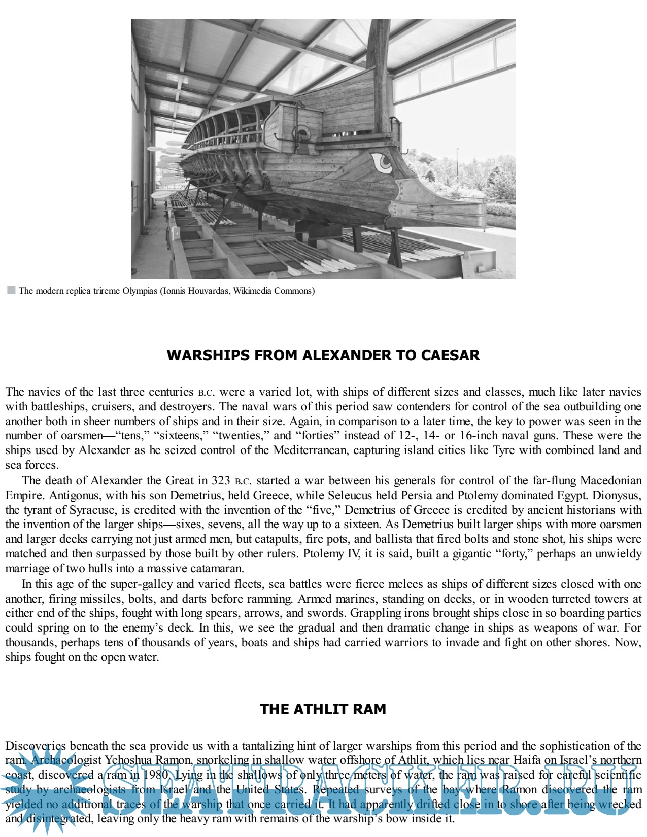 of the past, and providing intimate details of the experience of naval warfare. Arranged chronologically, the book begins with the warships and battles of the ancient Egyptians, Phoenicians, Greeks, Romans, and Chinese, and then progresses through three thousand years to the lost ships of the Cold