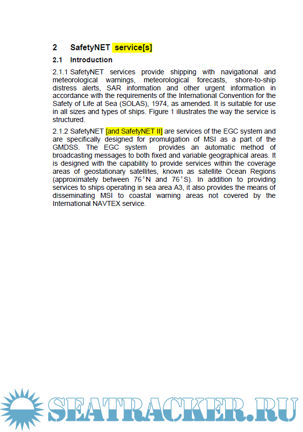 Description: SafetyNET services provide shipping with navigational and meteorological warnings, meteorological forecasts, shore-to-ship distress alerts, SAR information and other urgent information in accordance with the requirements of the International Convention for the Safety of Life at Sea (SOLAS), 1974, as amended.