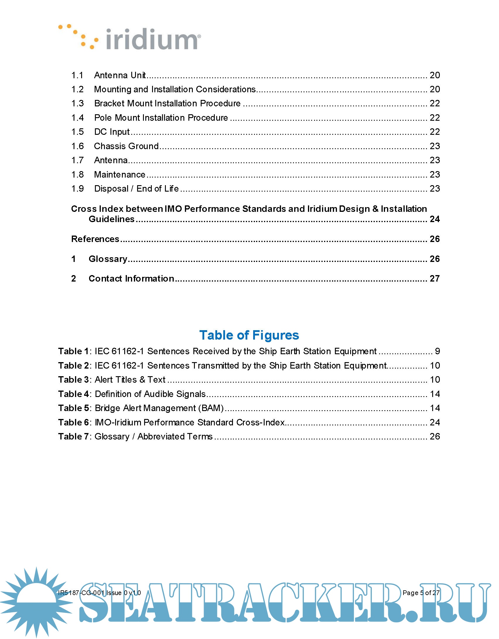 Mandatory and optional specifications for all Iridium® GMDSS equipment installed on board SOLAS ships are defined in the appropriate system and service manuals, and other technical requirements documents, for the relevant Iridium systems.