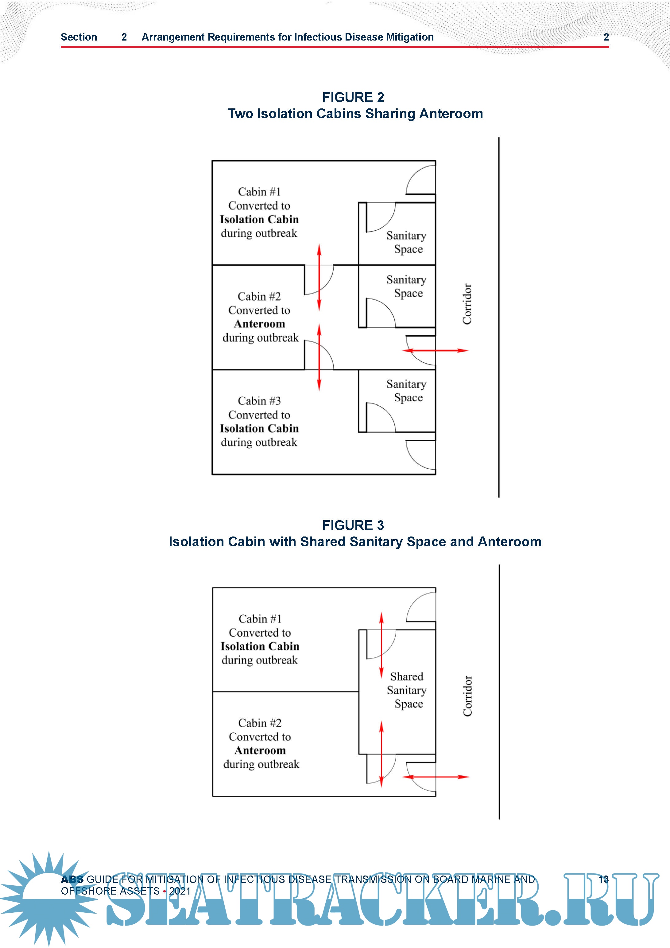 which can be used for the isolation and segregation of crew or passengers, and shore personnel or visitors.