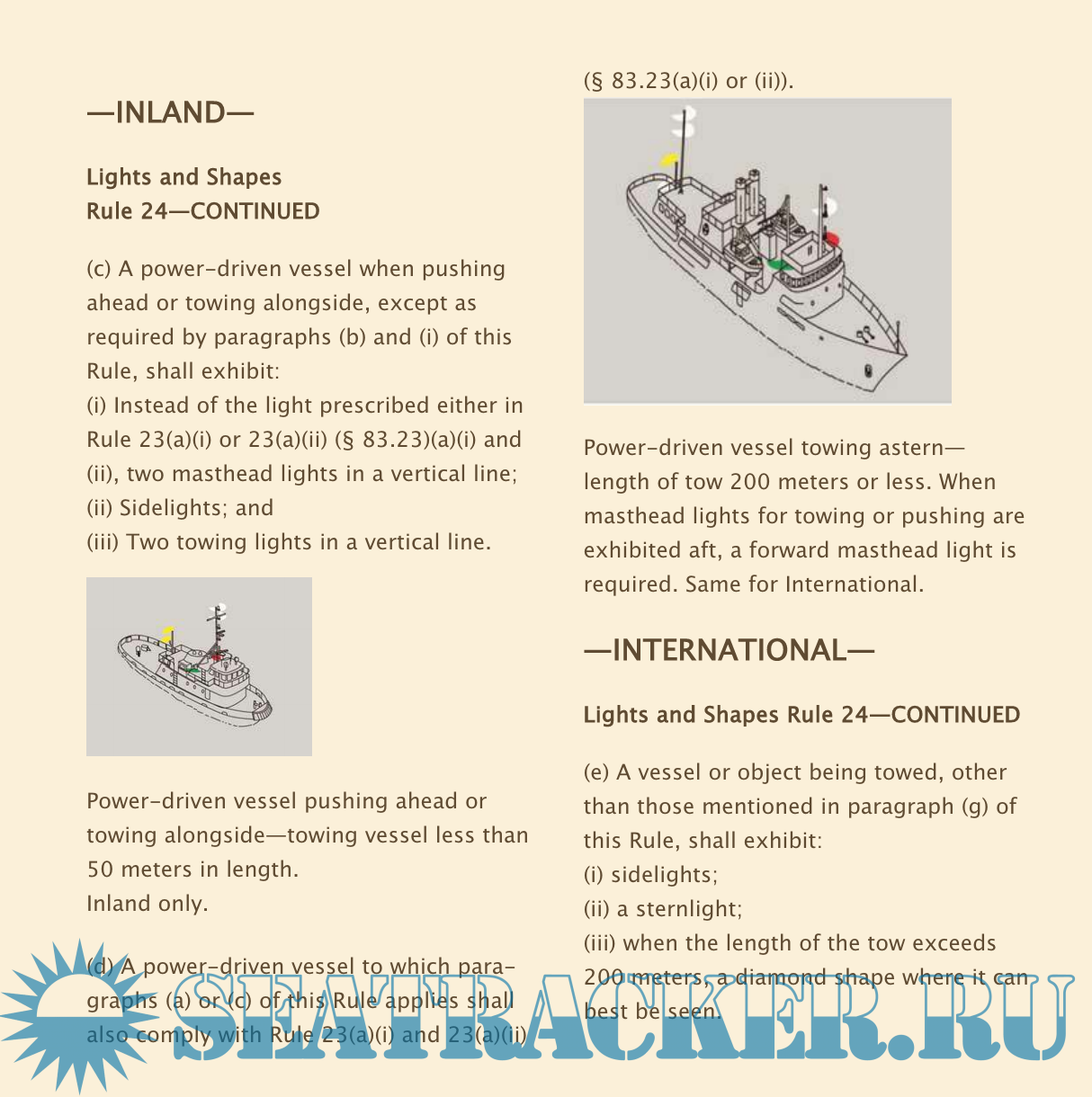Year: 2020 Language: english Author: USCG Genre: Handbook Format: EPUB/MOBI/AZW/PDF Quality: Unknown Pages count: 444 (Print length) Description: Current edition of Navigation Rules & Regulations Inland and International colregs. This book meets USCG carriage requirements, REQUIRED on-board all vessels over 12 meters, approximately 39 feet in length. Covers Inland Navigation Rules and Current edition of Navigation Rules & Regulations Inland and International colregs. Used for USCG licensing exams, the principles described in this book are critical for safe navigation. Paradise Cay Publications offers Notice to Mariners changes incorporated within the text for the best up-to-date version of this publication. MORE ABOUT NAV RULES: International Regulations for Preventing Collisions at Sea. Used for USCG licensing exams, the principles described in this book are critical for safe navigation. Paradise Cay Publications offers Notice to Mariners changes incorporated within the text for the best up-to-date version of this publication. The Navigation Rules & Regulations Handbook (Nav Rules) contains the essentials of boating protocol and safety. It is the reference manual every boat should carry and every skipper should be intimately familiar with. So valuable in fact the US Coast Guard REQUIRES a copy on board all vessels 12 meters (approximately 39') or more in lenght: 34;33 CFR 83.01(g) requires: 'The operator of each self-propelled vessel 12 meters or more in length shall carry, on board and maintain for ready reference, a copy of these Rules.' This handbook is a compendium produced by the U.S. Coast Guard Navigation Standards Branch, U.S. Coast Guard Headquarters, Washington, DC, of the: International Regulations for Preventing Collisions at Sea, 1972 (72 COLREGS); Inland Navigation Rules (33 CFR 83); their respective technical annexes (33 CFR 84-90); COLREGS Demarcation Lines (33 CFR 80); Vessel Bridge-to-Bridge Radiotelephone Regulations, (33 CFR 26); Vessel Traffic Management Regulations (33 CFR 161); and, various other pertinent provisions of the U.S. Code and Code of Federal Regulations regarding compliance and penalties associated with the Navigation Rules.
