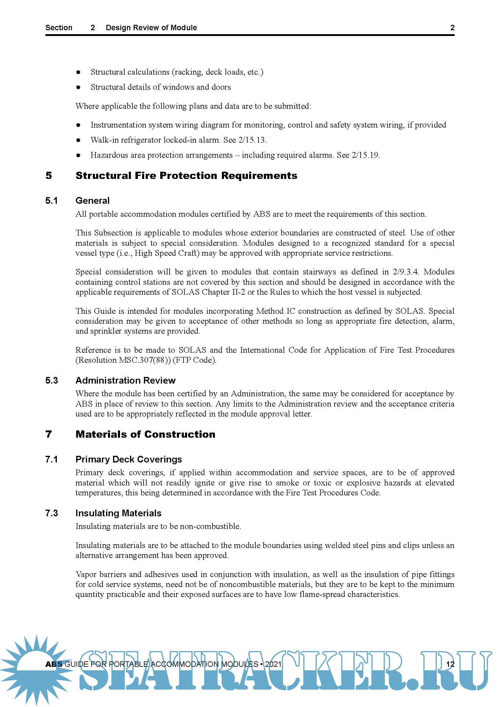 This Guide outlines requirements for the design and survey of accommodation modules installed