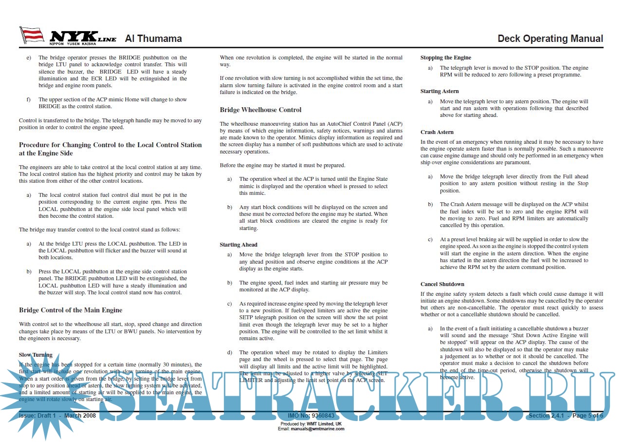 Year: 2008 Language: english Author: NYK Line Genre: Manual Publisher: Worldwide Marine Technology Format: PDF Quality: eBook Pages count: Multiple Description: Cargo, Deck and Machinery operating manuals for NYK Line LNGC Al Thumama.