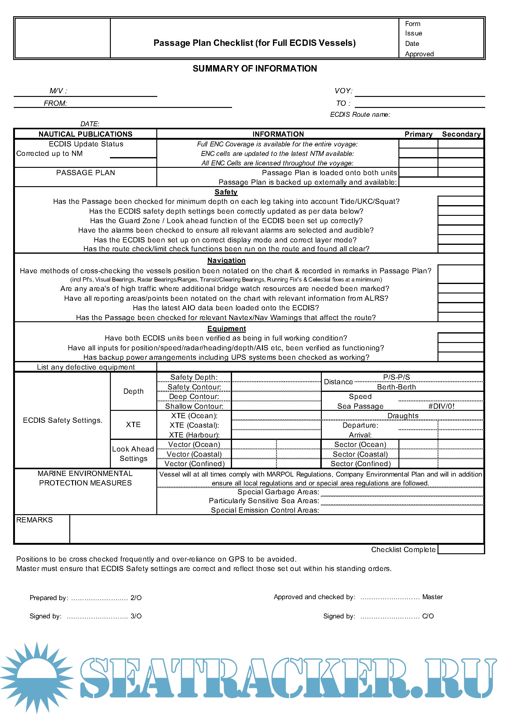 * ECDIS Passage Plan Form