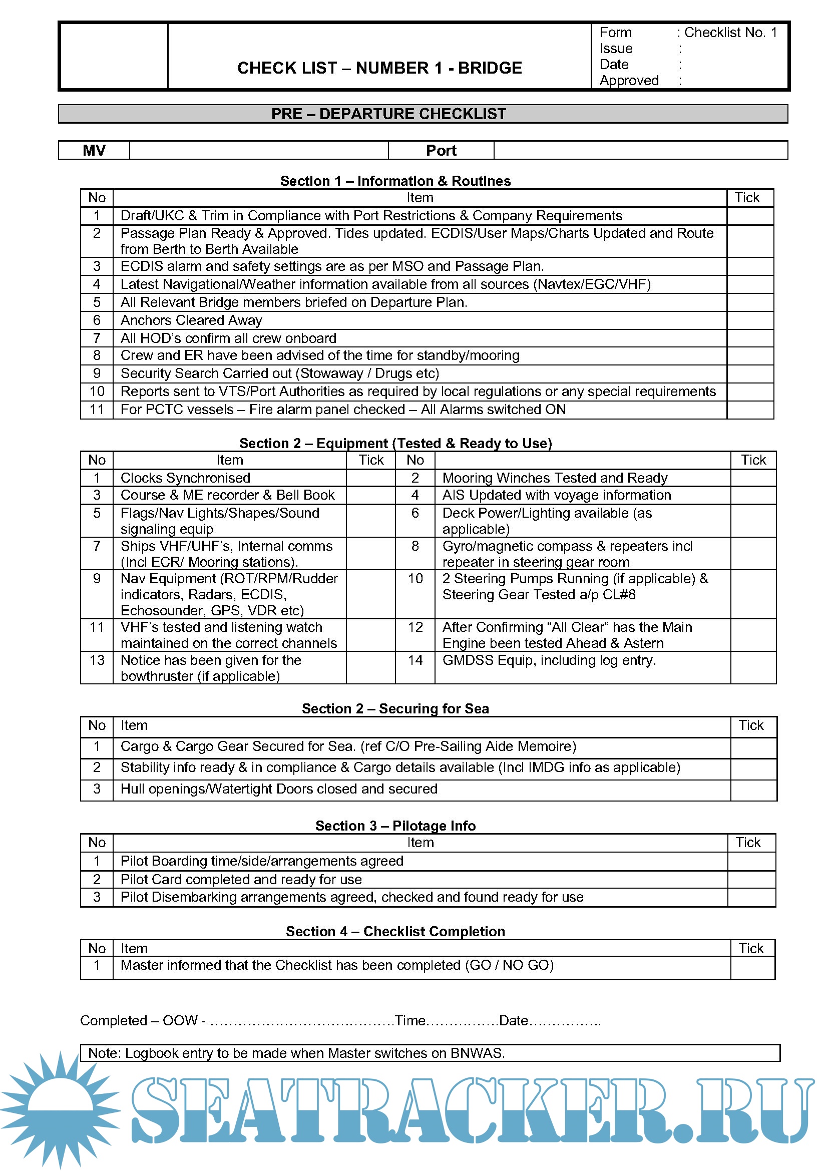 Navigation Bridge and Engine Room Checklists (SMS)