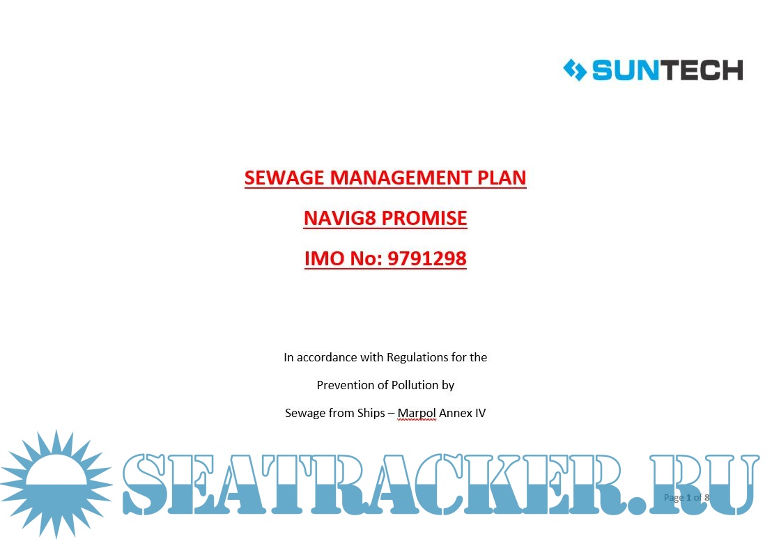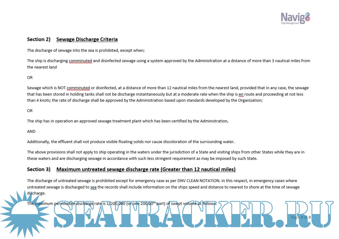 Description: In accordance with Regulations for the Prevention of Pollution by Sewage from Ships – Marpol Annex IV