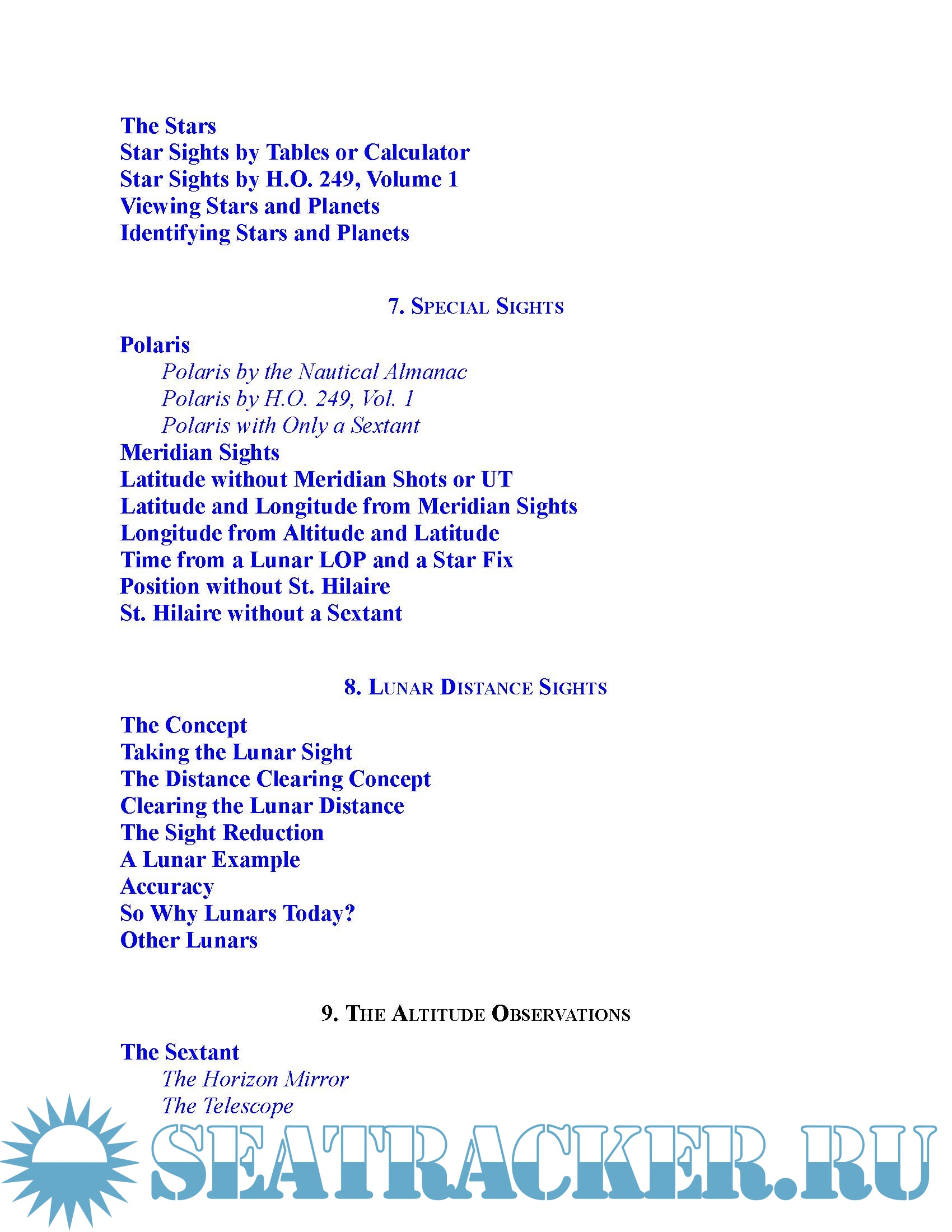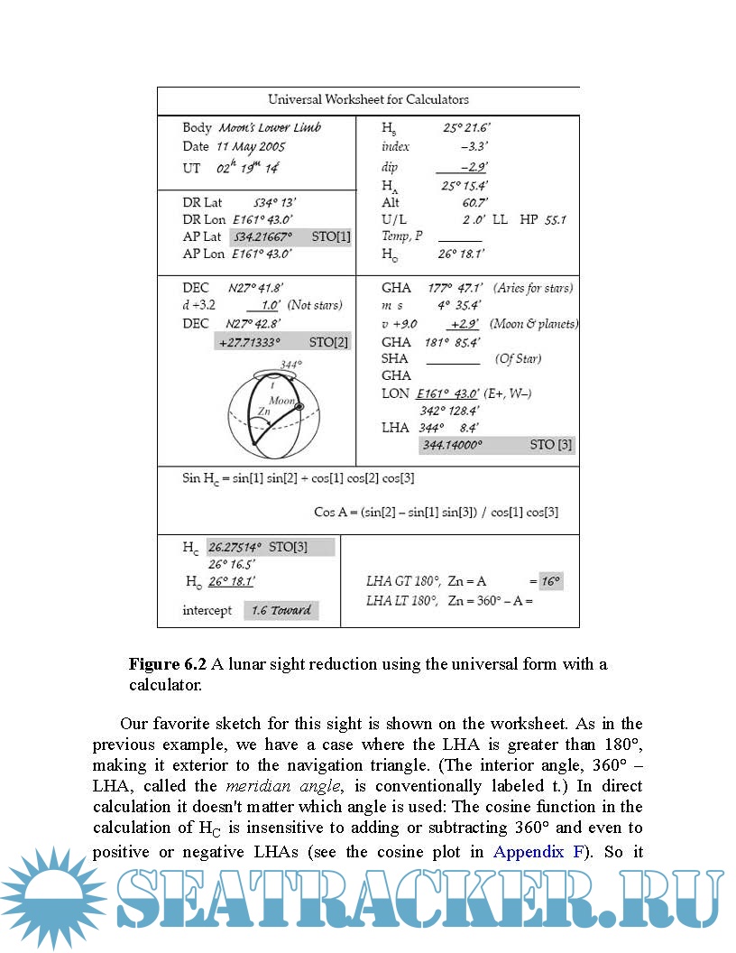 It’s tailored for navigation in the GPS age—a time of computers, calculators, and web resources. Although it covers all of the traditional methods of “working a sight,” the primary thrust is using the (under $10) scientific calculator. Using equations that you key into your calculator, this book guides you toward a better understanding of the concepts of celestial navigation.