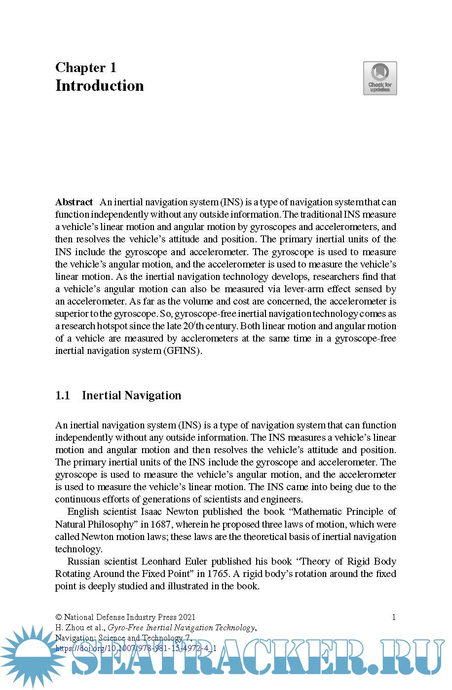 Description: This book focuses on gyro-free inertial navigation technology, which is used to measure not only linear motion parameters but also angular rates. Since no gyroscopes are used, the key technologies, such as initial alignment, attitude resolution, and error calibration, are very different than those used in traditional methods.