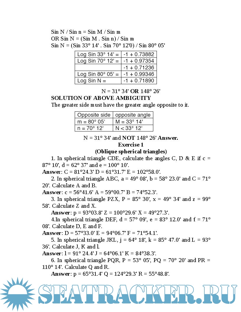 Book for learning Spherical Trigonometry problems for candidates appearing for Second Mates and Chief Mates examinations.