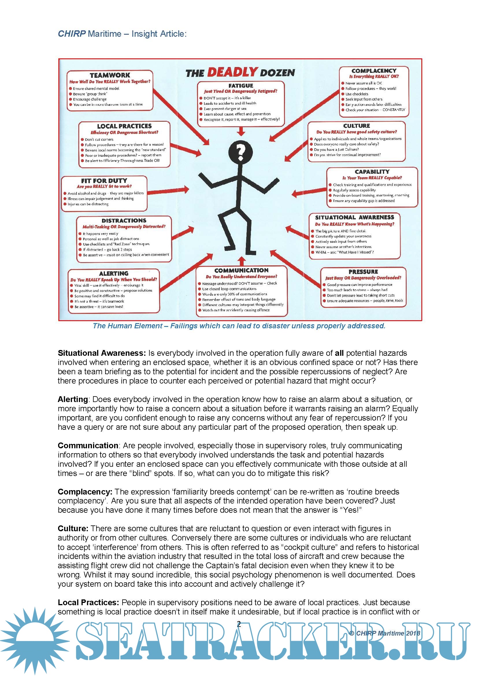 Description: It contains Insight Articles written by the CHIRP Maritime Advisory Board, and other papers from multiple organisations, relating to the Human Element, Safety Focus articles from Safety at Sea, plus other current safety related topics.