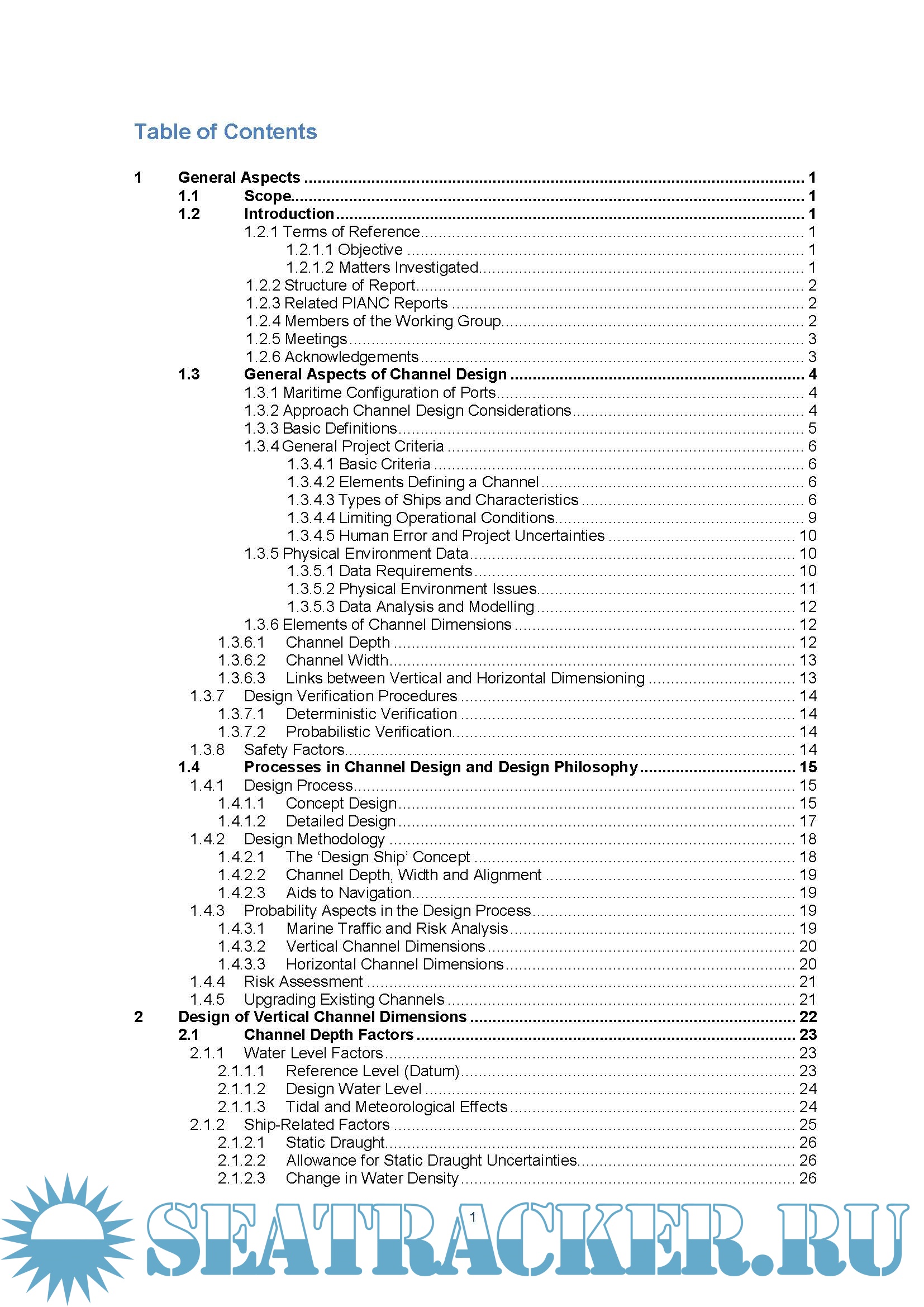 Description: This report provides guidelines and recommendations for the design of vertical and horizontal dimensions of harbour approach channels and the manoeuvring and anchorage areas within harbours, along with defining restrictions to operations within a channel. It includes guidelines for establishing depth and width requirements, along with vertical bridge clearances.