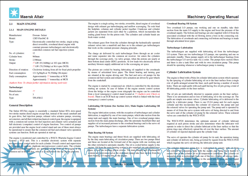 Container MV Maersk Altair - IMO 9342499 - Machinery Operating Manual