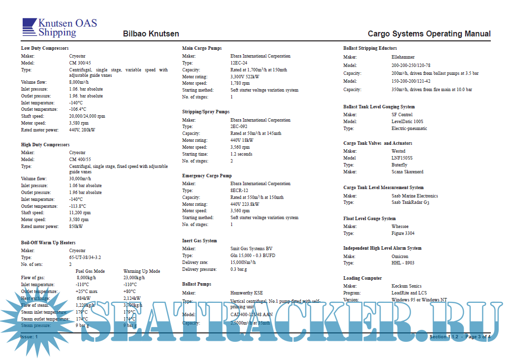 LNGC Bilbao Knutsen: Machinery Systems Operating Manual - Knutsen OAS Shipping [2004, PDF]