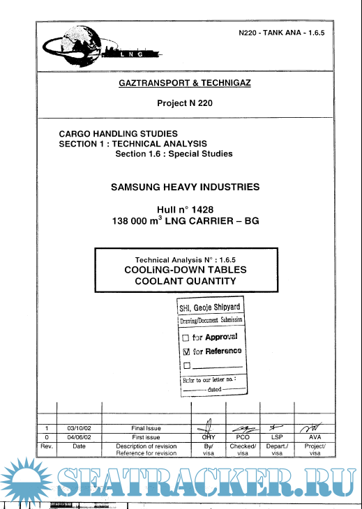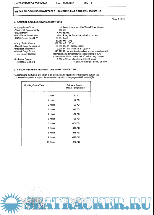 Samsung HI - Cooling-Down Tables - Coolant Quantity for Hull 1428 (Methane Kari Elin)