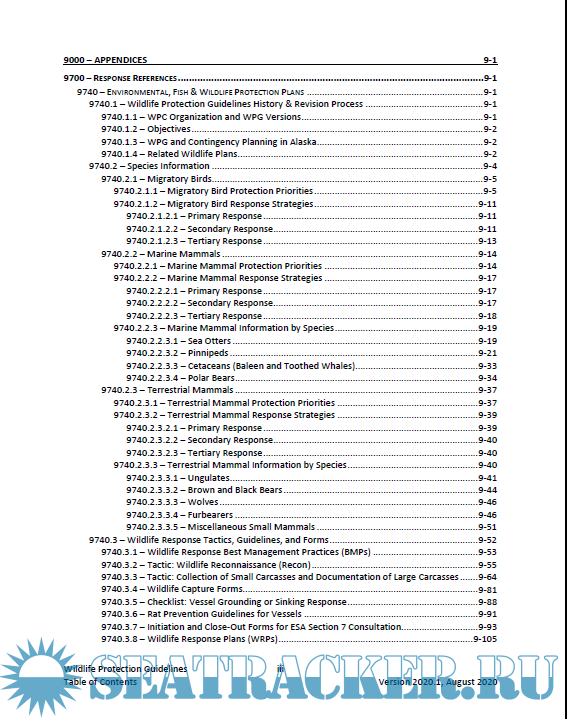 Year: 2020 Language: english Author: Alaska Regional Response Team Genre: Guide Format: PDF Quality: eBook Pages count: 220 Description: The WPG provide tools and background information to address wildlife concerns when planning for and responding to a discharge, or substantial threat of discharge, of oil and/or a hazardous substance from a vessel or on/offshore facility operating within Alaska and surrounding waters.