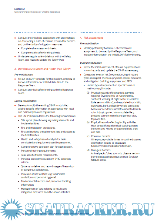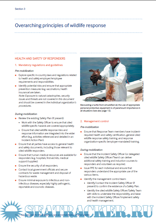 Year: 2017 Language: english Author: IPIECA - IOGP Genre: Guide Format: PDF Quality: eBook Pages count: 72 Description: The information provided in this document serves as a reference to illustrate what should be considered as international ‘standards of practice’ for animal protection and care in an oiled wildlife response