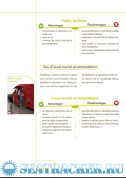 Year: 2013 Language: english Author: POSOW Genre: Manual Format: PDF Quality: eBook Pages count: 56 Description: Two categories of operators are involved in the shoreline response following an oil spill incident: firstly, responders from the authority in charge of the response and private contractors and secondly, volunteers. Volunteers can be considered as: aa) Professional volunteers are people who have specialised skills in emergency situations and experience in volunteering in social /environmental / health / industrial crises. They generally belong to a recognised volunteer organisation that has trained them for disaster response and has a mechanism in place to address their mobilisation and use in an emergency. bb) Spontaneous volunteers are people who have no specific skills related with the needs of emergency situations, and who volunteer individually in the aftermath of a disaster or an emergency because they are keen to help, feeling concerned by the situation and having understood that labour was lacking.
