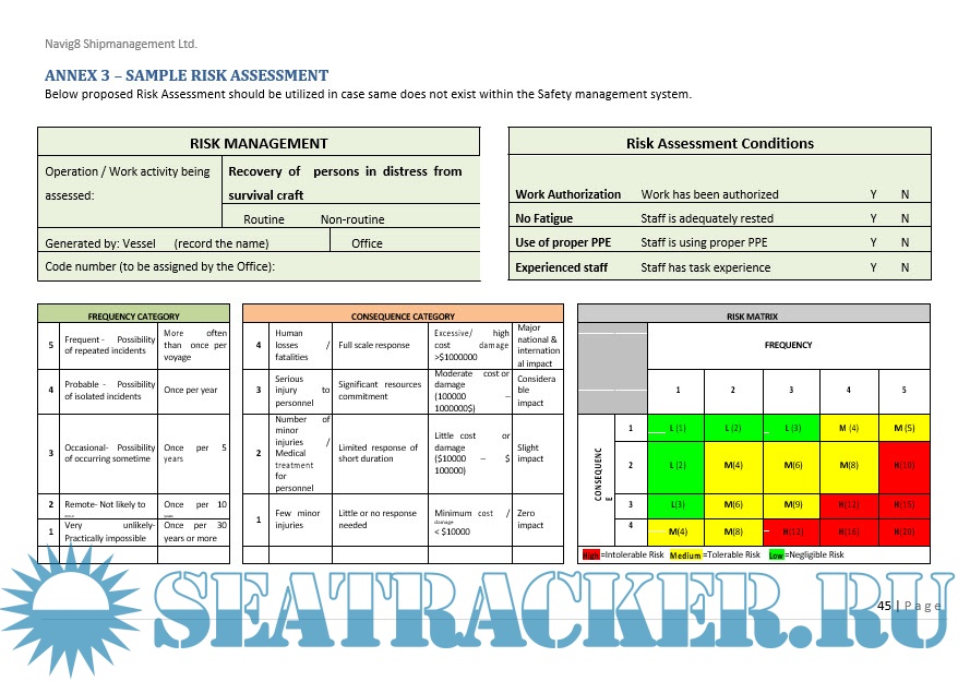 Risk assessment with equipment intended to be used on board, taking into account the anticipated conditions and ship-specific characteristics, were carried out.