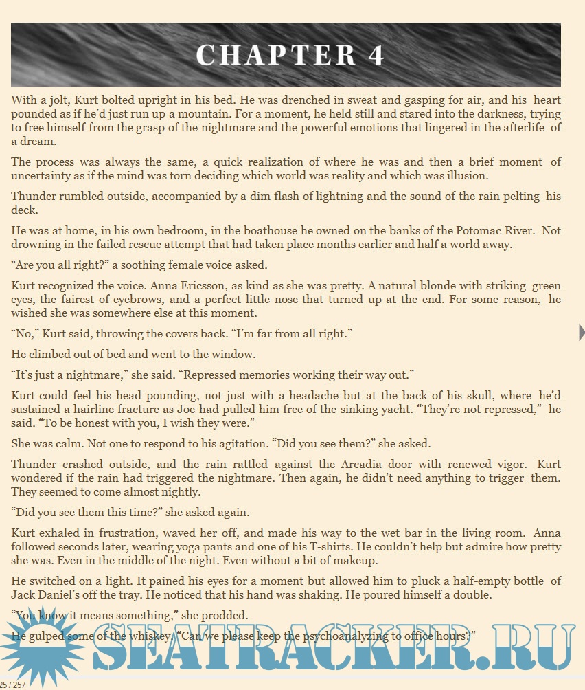 When Kurt Austin is injured attempting to rescue the passengers and crew from a sinking yacht, he wakes with fragmented and conflicted memories. Did he see an old friend and her children drown, or was the yacht abandoned when he came aboard? For reasons he cannot explain, Kurt doesn't trust either version of his recollection.