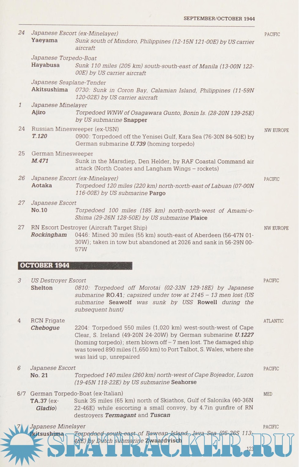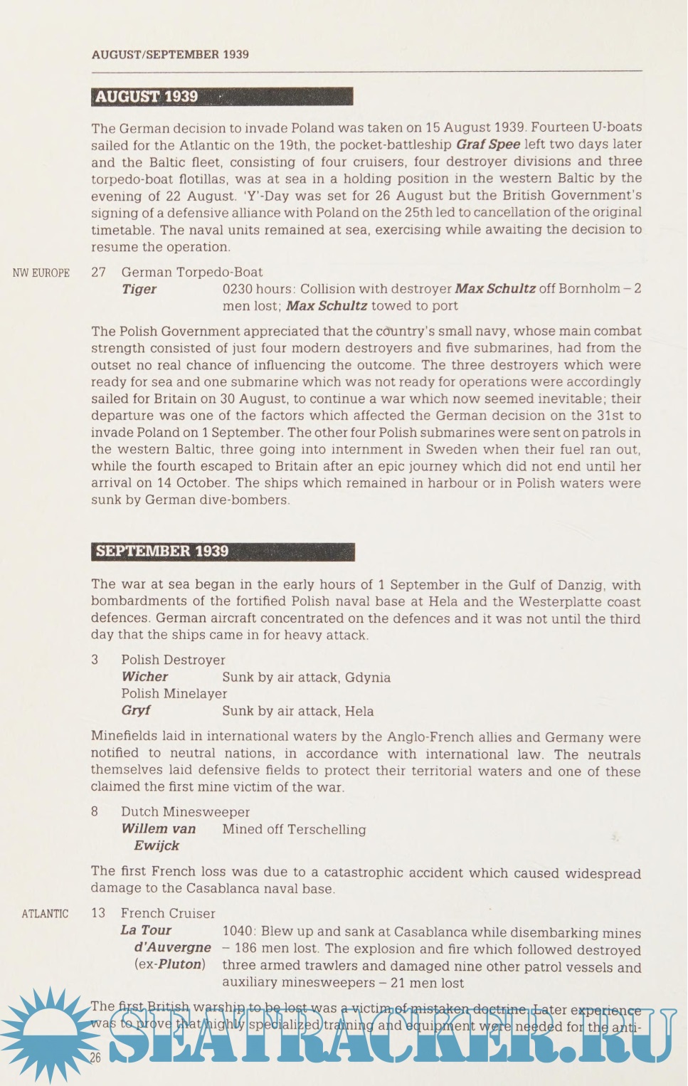 Description: Written by an established naval historian, this guide is aimed at historians, modellers, serving officers and veterans. Unlike recent books dealing with British vessels only, this volume deals with the losses of all navies whether caused in action, by accident, scuttling or other means. A series of design features allows easy-reference - the European theatre actions are set in Roman text, the Pacific in italics, and the outer margins of the page carry a further, more detailed index to the location.