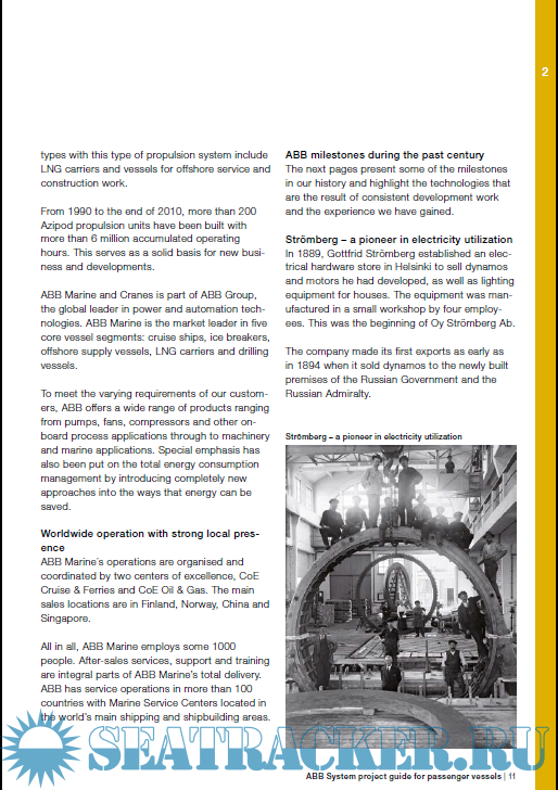 Description: Through innovative solutions, high competence and global capability, ABB Marine contributes to reliable, safe, more profitable and environmentally friendly operation of high-performance vessels. Our roots go back to the early days of electrifying the society. ABB Marine has supplied electric power and propulsion systems to ships for nearly a century already, and the number of vessel types and customers preferring electric propulsion is continuously increasing. We have the longest experience and the largest number of installed electric propulsion systems worldwide.