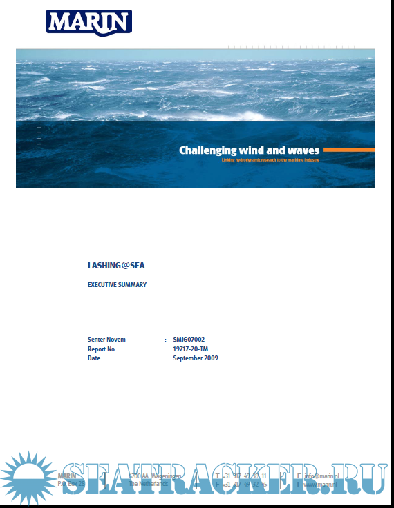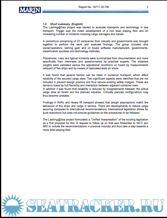 Description: The Lashing@Sea project was started to evaluate standards and technology in sea transport. Trigger was the noted development of a non level playing field and an increasing number of incidents involving cargo damages and losses.
