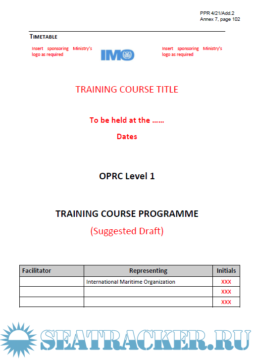 Description: The IMO OPRC Model training courses have been developed to address all general aspects of oil spill planning, response and management. They are intended to provide guidance on the general framework and content a training course may adopt to meet the specific needs of the participants, country or region in which the course is to be delivered.