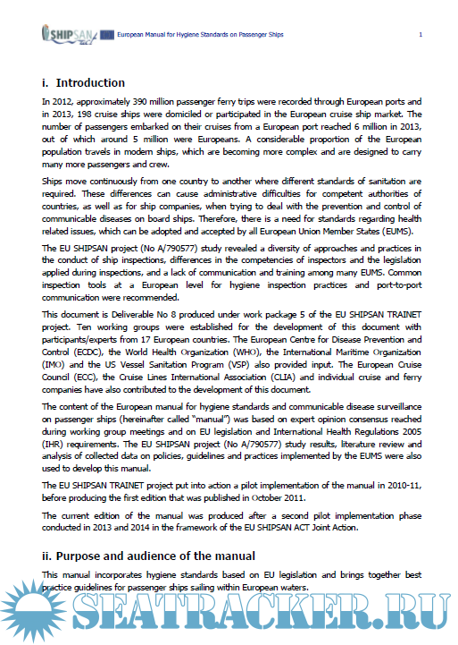 arises from the EU SHIPSAN ACT Joint Action, which has received funding from the European Union, in the framework of the Health Programme (2008-2013). Sole responsibility lies with the authors and the Consumers, Health, Agriculture and Food Executive Agency (CHAFEA) is not responsible for any use that may be made of the information contained therein.