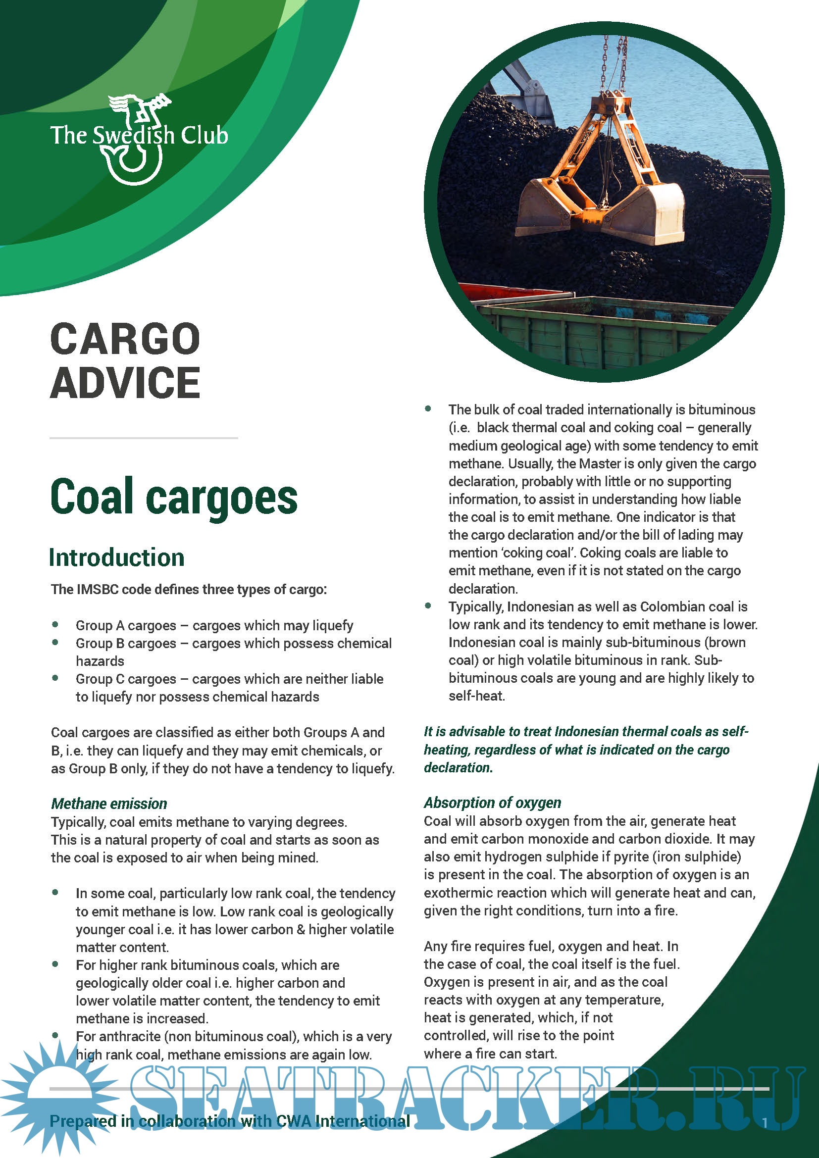 Description: The Swedish Club recently launched a cargo advice Guide, focusing on Coal cargoes shipments.