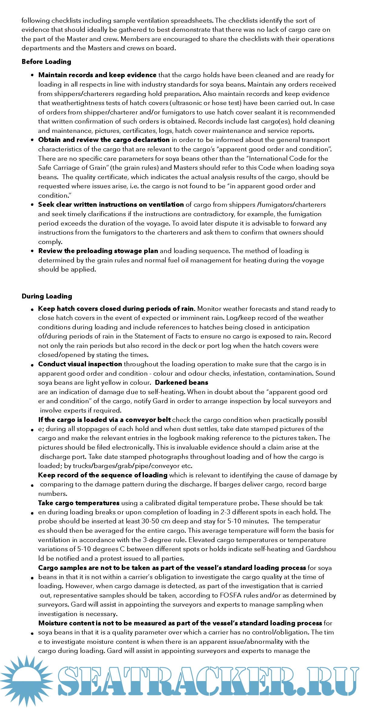 Master’s Checklists for Loading and Carriage of Soya Beans