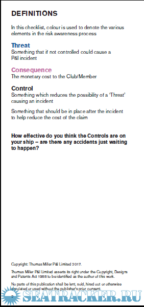 Description: This booklet is a guide to the Controls and key points that the UK Club’s Risk Assessors look for when inspecting a vessel.