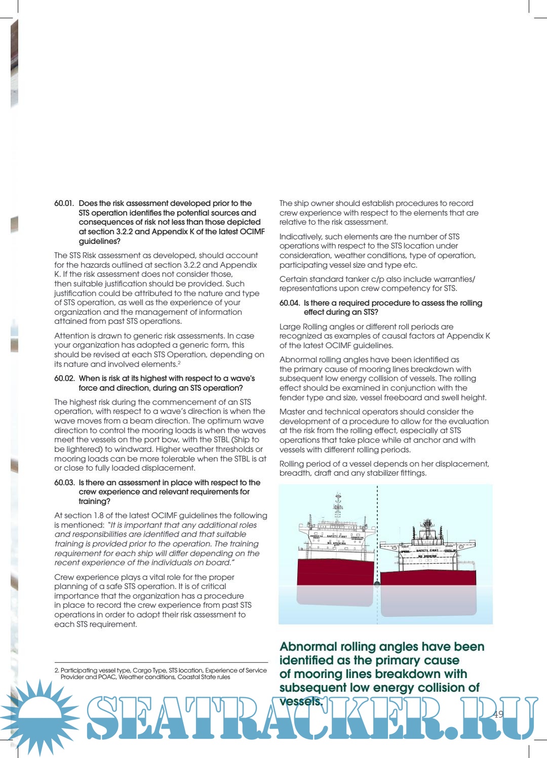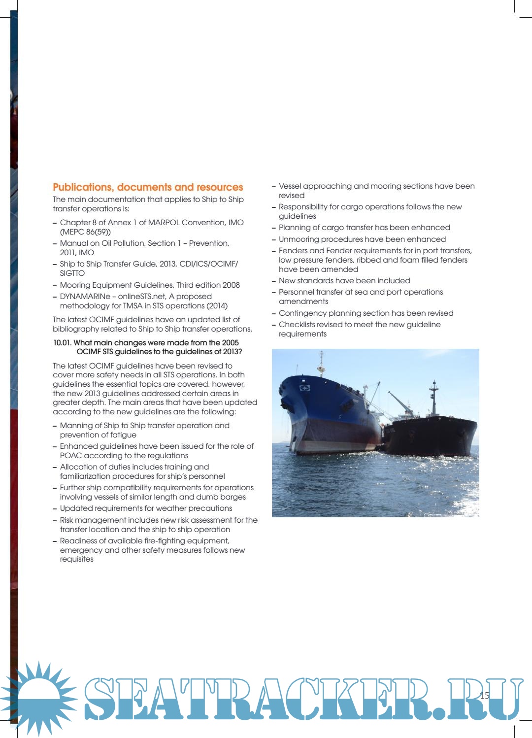 Description: MARPOL Annex I Chapter 8 requires the Integration of the STS plan with the Ship owner's Safety Management System (SMS) and thus will be opened to scrutiny In the event of an incident and subsequent legal actions.
