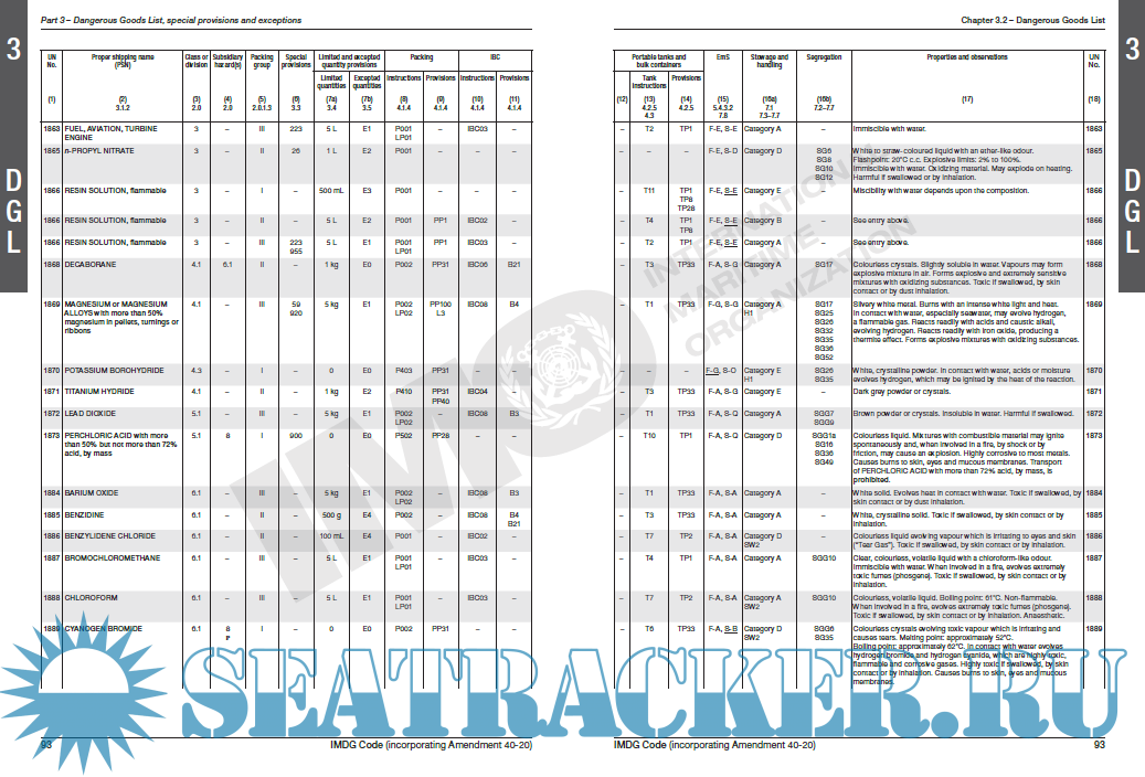 Description: The International Convention for the Safety of Life at Sea, 1974 (SOLAS), as amended, deals with various aspects of maritime safety and contains in chapter VII the mandatory provisions governing the carriage of dangerous goods in packaged form or in solid form in bulk. The carriage of dangerous goods is prohibited except in accordance with the relevant provisions of chapter VII, which are amplified by the International Maritime Dangerous Goods Code (IMDG Code).