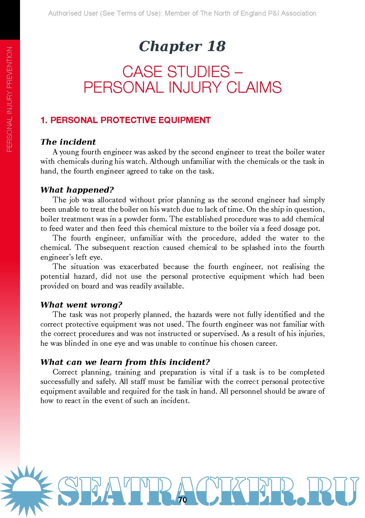 This guide is intended as an additional weapon in the fight against accidents – particularly personal injuries. It is not intended as an alternative to thorough training. The competency of seafarers to correctly use safety equipment and to be fully aware of onboard safety procedures is of paramount importance. With the common goal of reducing the cost of personal injury in both human and financial terms, everyone has a responsibility and a role to play.