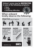 Description: BIMCO-made posters to protect seafarers and visitors onboard ships against Coronavirus (COVID-19). Black-and-white and coloured posters that can be easily printed and used onboard ships at shoreside, shipside of gangways as well at various locations in the accommodation.