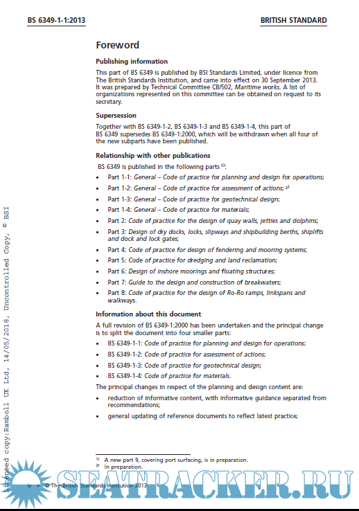 BS 6349-1-1:2013 - Maritime works – Part 1-1 - General – Code of practice for planning and design for operations