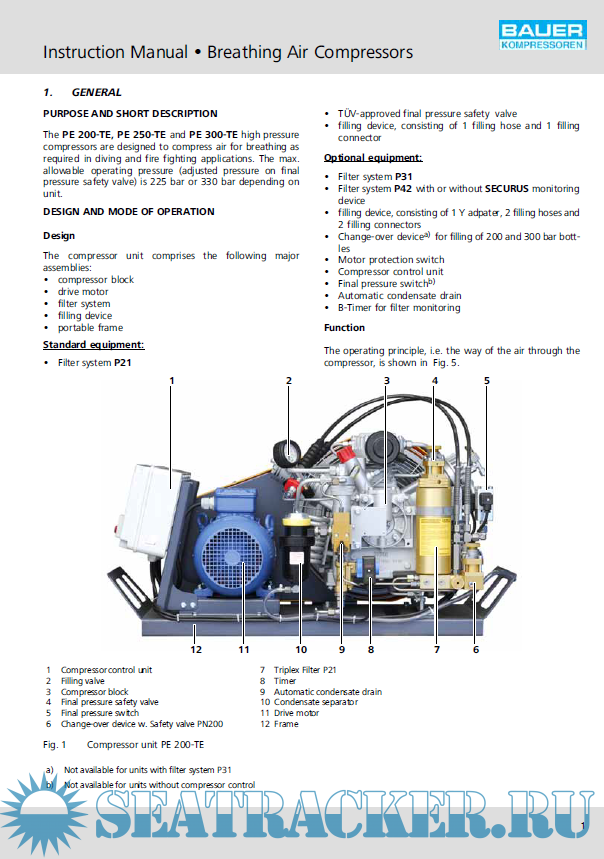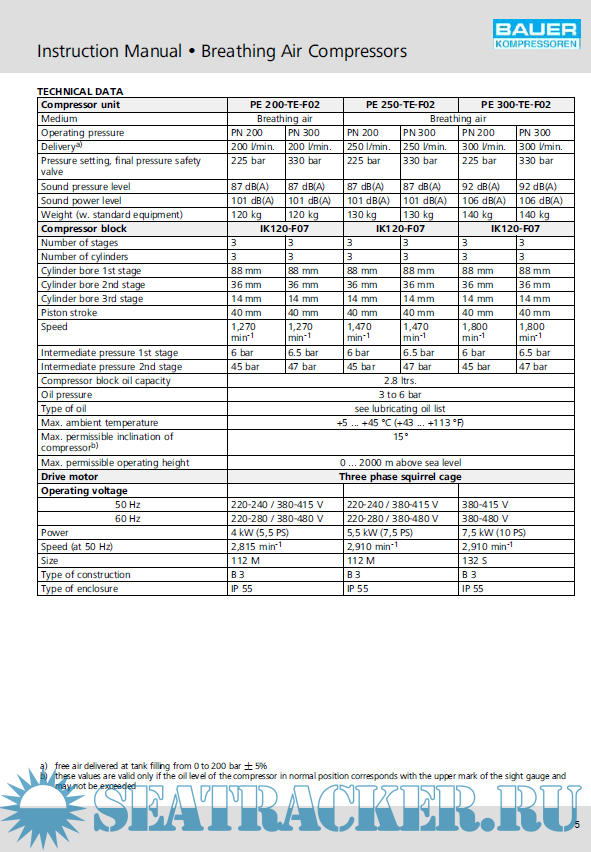 Bauer Compressor Poseidon Edition HE - 250/300 Instruction Manual Breathing Air Compressor - BAUER…